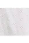 The Kina Dress is crafted from 100% embossed eyelet cotton with a fully lined, relaxed fit, featuring a square neckline, scallop trim along the neckline, armholes, and hem, mini length, and front side hidden slit pockets.