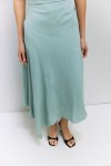 The Renee Dress is a sleeveless maxi dress with an asymmetrical cowl neckline and a twisted strap detail on the right shoulder. Fitted at the waist with an asymmetrical hemline, it's designed for a flattering silhouette with a supportive band along the back shoulder.