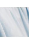 The Hazel Top is crafted from 100% cotton with a loose, babydoll fit, featuring a crewneck with partial button closure and placket, puff half sleeves with elastic hems, and lightly embossed stripe midweight fabric.