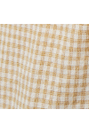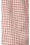 The Delia Top is a loose babydoll blouse in lightweight cotton gingham with a relaxed silhouette. It features a crewneck trimmed with lace, raglan short puff sleeves, and a front partial shell button closure.