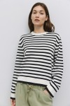The Klein Sweater is a striped pullover sweater designed with a boyfriend fit for a laid-back, cozy look. The bell sleeves and crew neckline add a relaxed, yet polished touch to the mid-weight knit. Perfect for layering or wearing on its own for a casual day out.